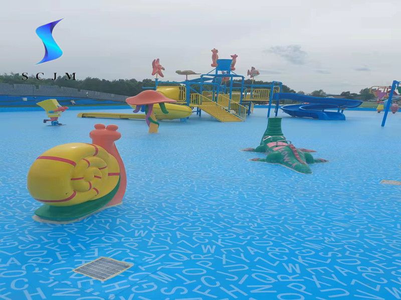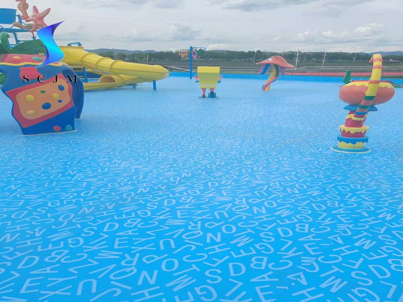 本項(xiàng)目位于內(nèi)蒙古自治區(qū),為室外戲水池項(xiàng)目,也就是水上樂園項(xiàng)目,基礎(chǔ)面為水泥收光面,采用滿刮膠搭邊熱熔焊接工藝,選擇1.5mm字母圖案游泳池防水膠膜為材料,進(jìn)行鋪設(shè)安裝,整體效果如下: